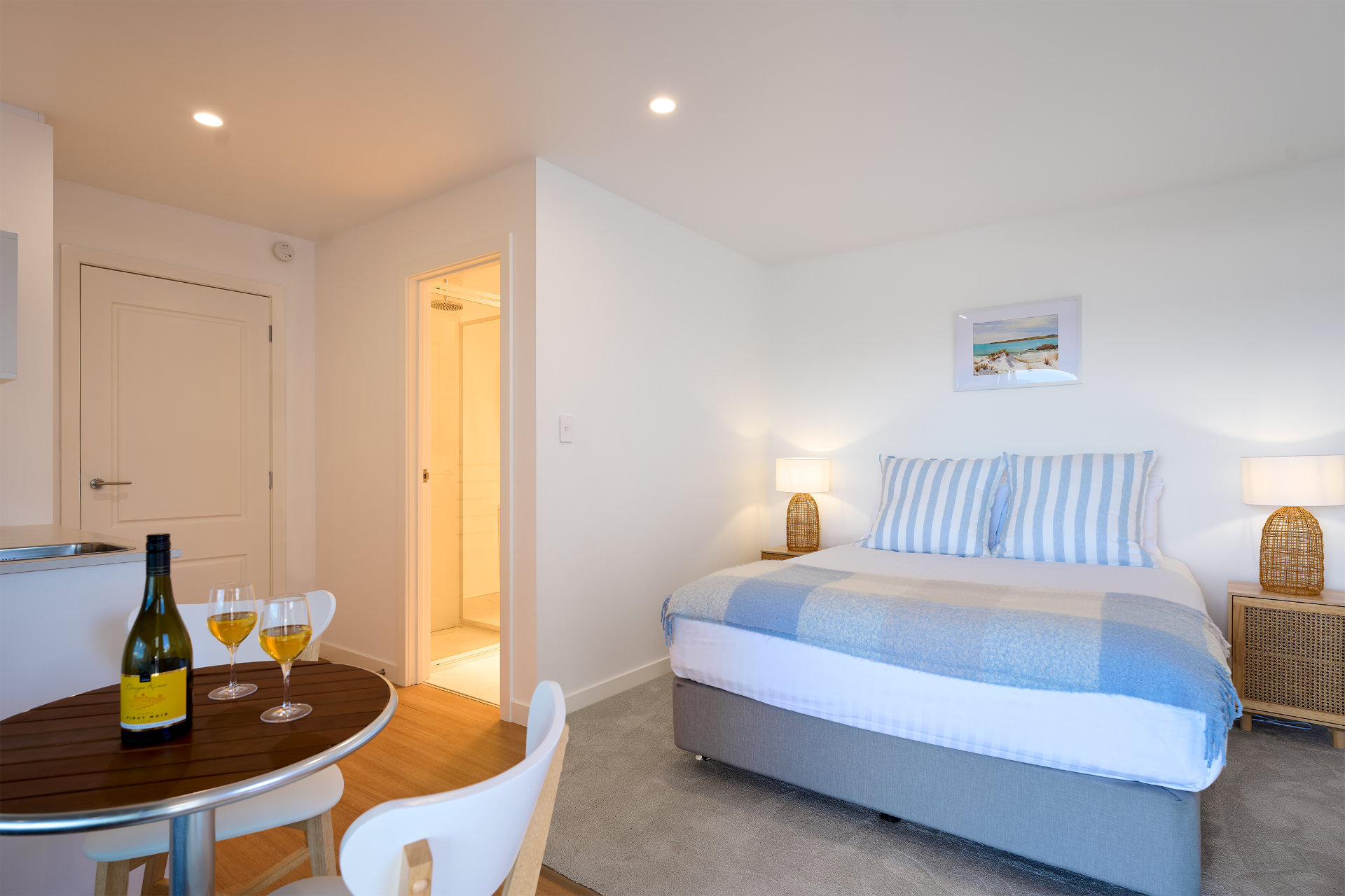 The apartment features a microwave & bar fridge. Stream your favourite shows on Netflix —simply log in with your own account and enjoy! Enjoy the comfort of heating during cooler days. Step outside onto the small, covered deck, where you can savour your morning coffee in the fresh coastal air.