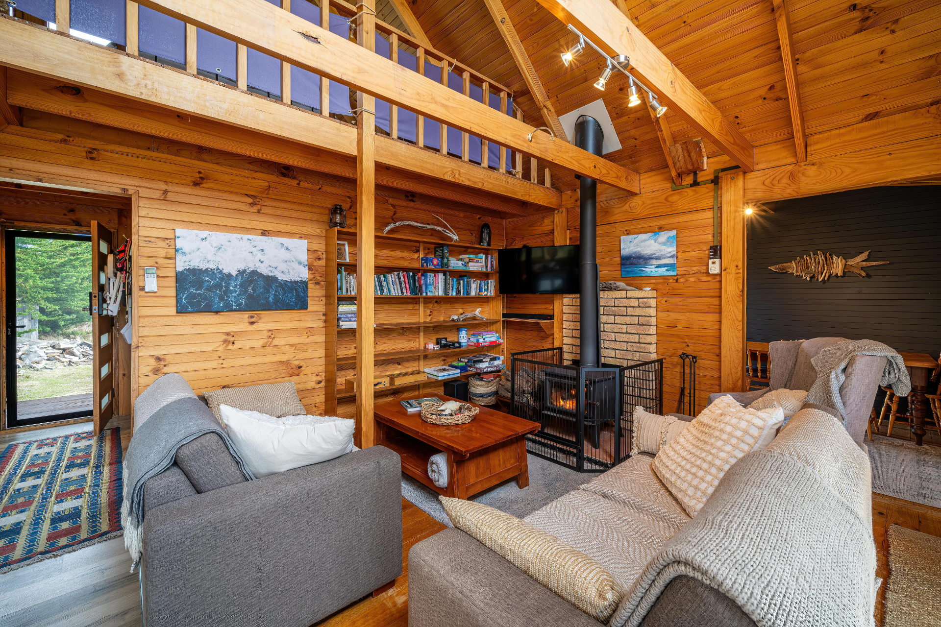 Outdoor living is a highlight, with a covered sundeck offering shelter for drizzly days or lazy breakfasts, while the uncovered deck is perfect for soaking up the sun, enjoying drinks with friends, or star-gazing at night. The BBQ and outdoor dining area make it easy to host alfresco meals, with the sound of waves and calls of local wildlife as your backdrop.